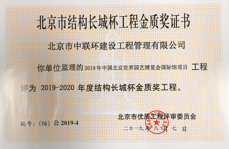 公司項目獲評2019-2020年度結構長城杯金質獎